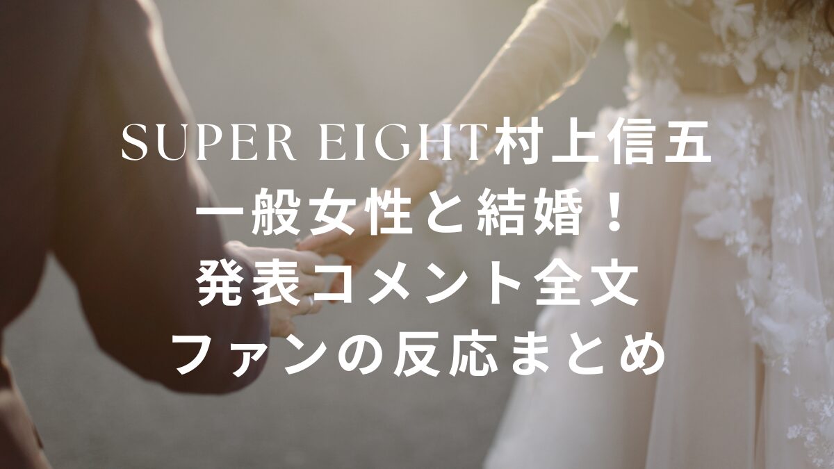今回の結婚により、村上信五さんは SUPER EIGHT現役メンバーで2人目の既婚者 となりました。
