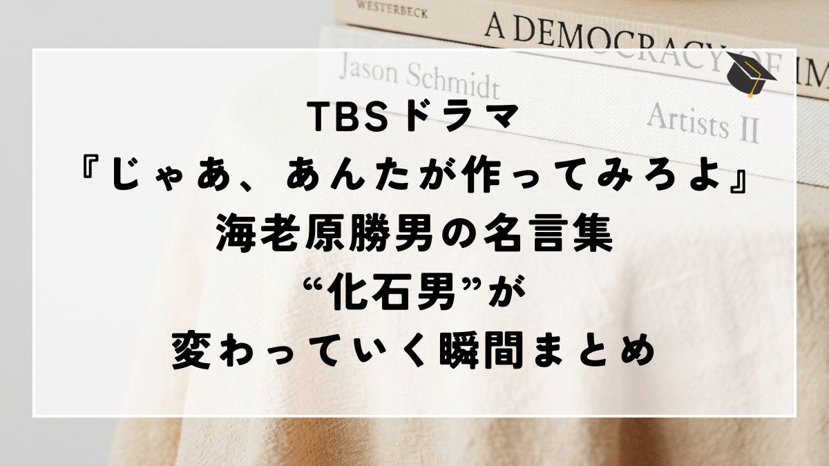 TBS火曜ドラマ『じゃあ、あんたが作ってみろよ』に登場する、海老原勝男(竹内涼真)の名言・印象的なセリフを一挙にまとめました。
